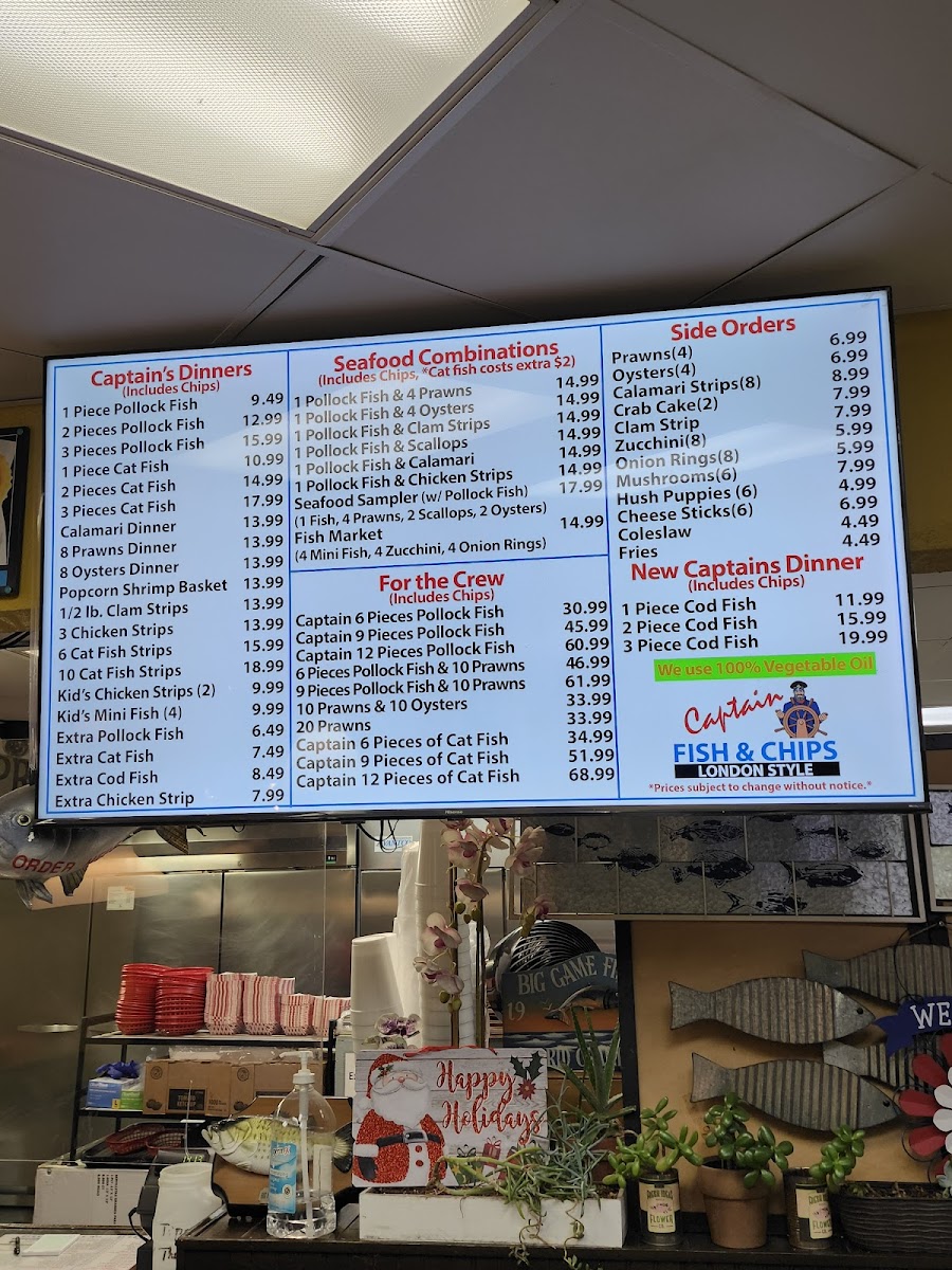 Nestled in Sacramento, Captain Fish & Chips stands out for its mouthwatering offerings and loyal customer base. Renowned for serving up hearty portions, their menu features a delightful array of seafood selections—from the classic 3 Piece Pollock Fish ($15.99) to the Calamari Dinner ($13.99) and Popcorn Shrimp Basket ($13.99). Patrons rave about the impressive sizes of their fish, often likening them to the authentic experience of British fish and chips.